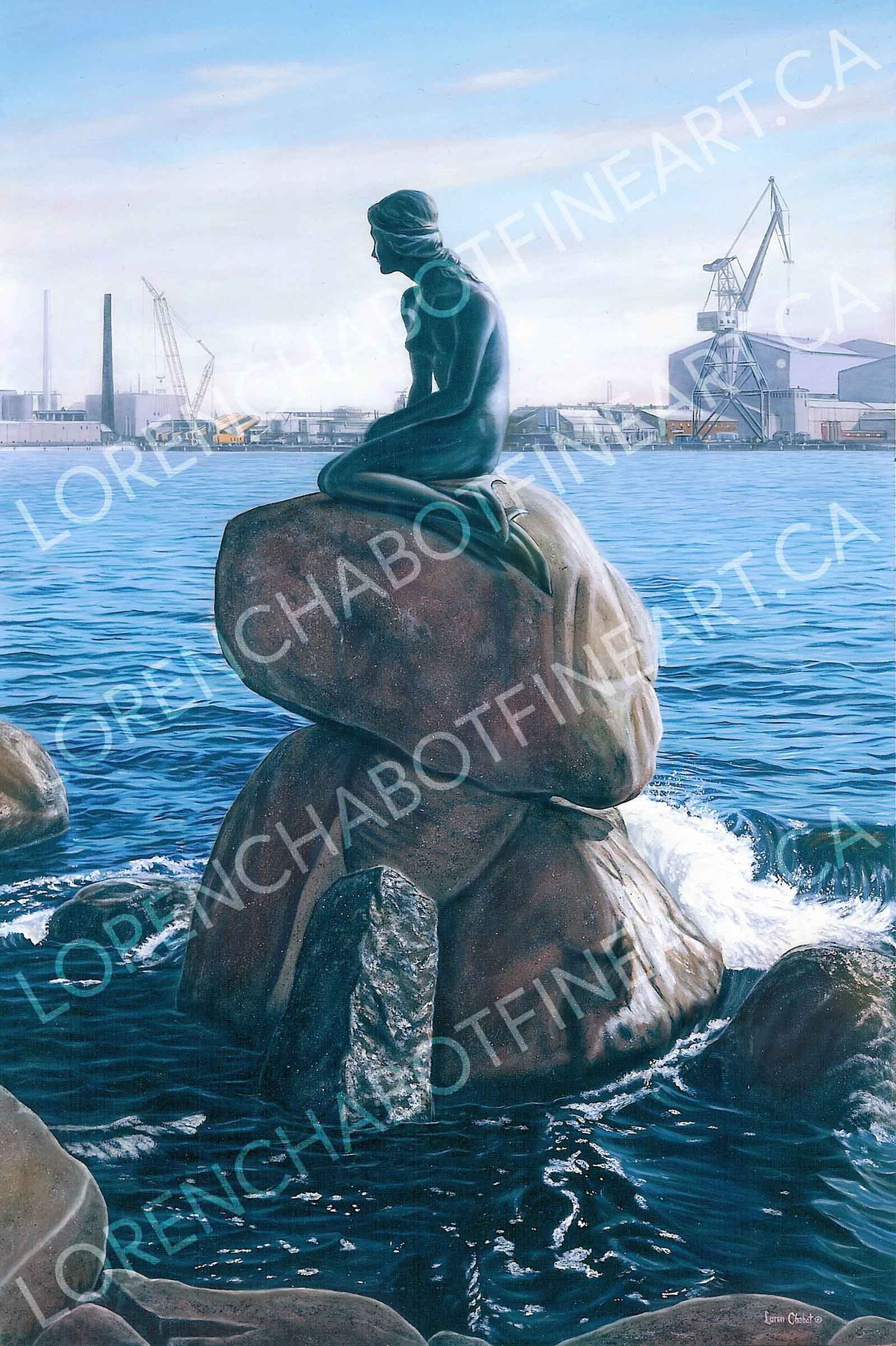 Mermaid Copenhagen Denmark Painting is a bronze statue by Edvard Eriksen, showing the little mermaid becoming human. A replica is in Stanley Park in Vancouver, British Colombia.
